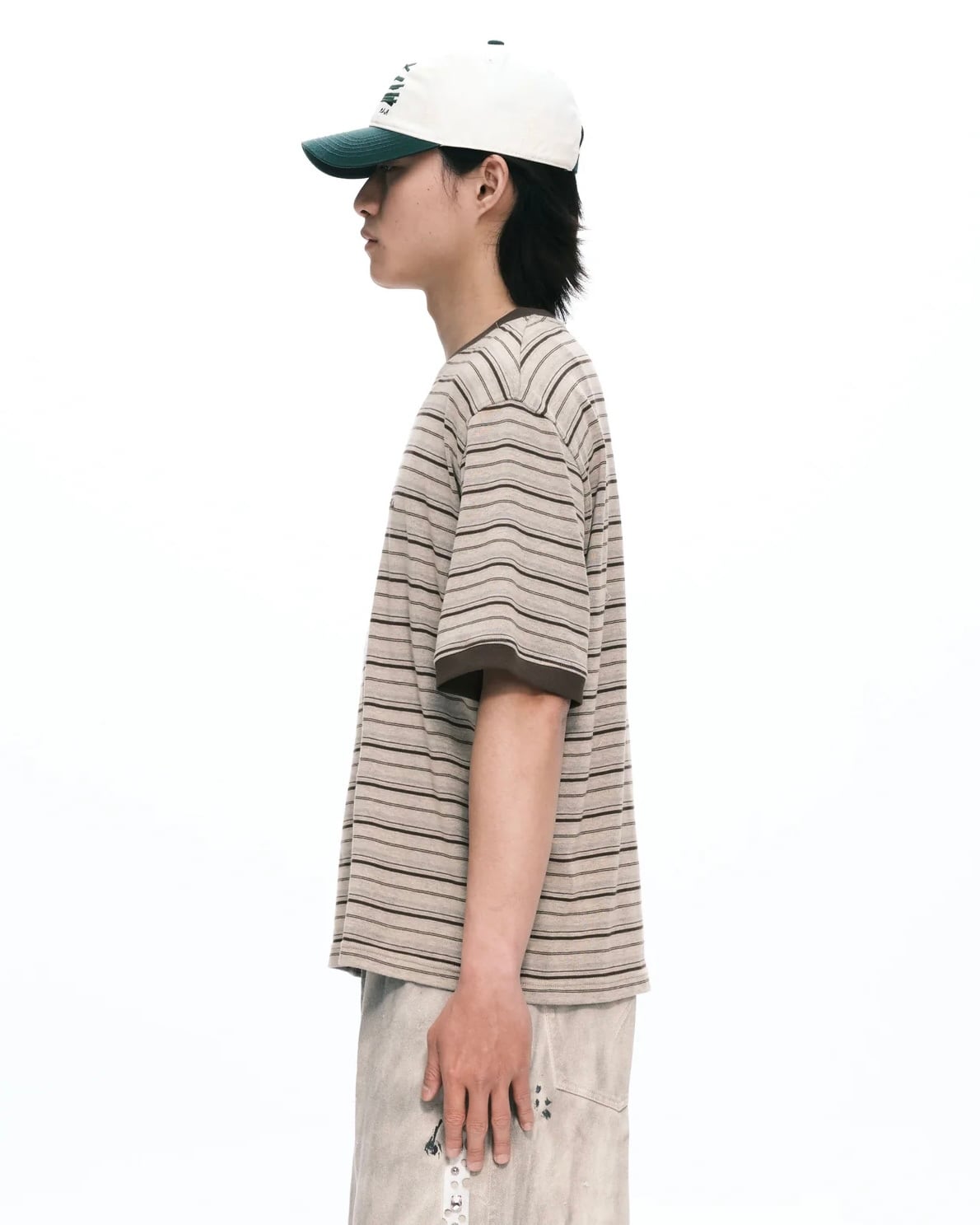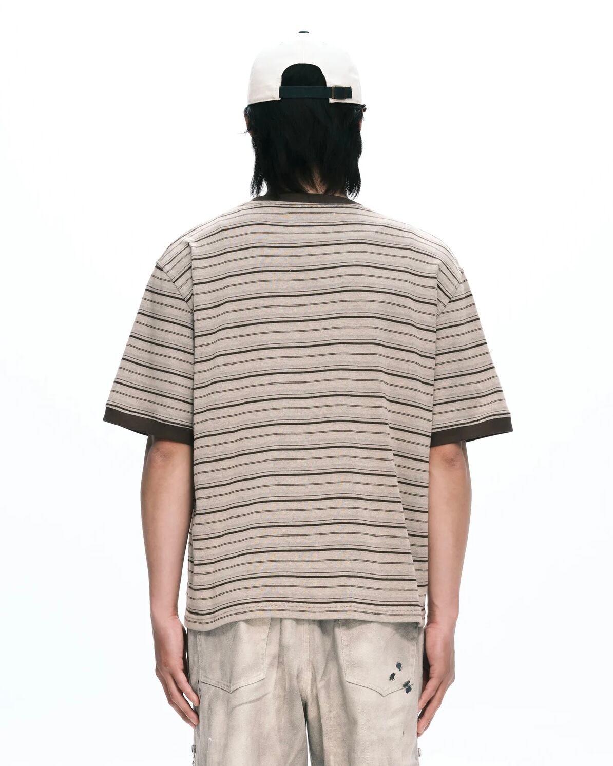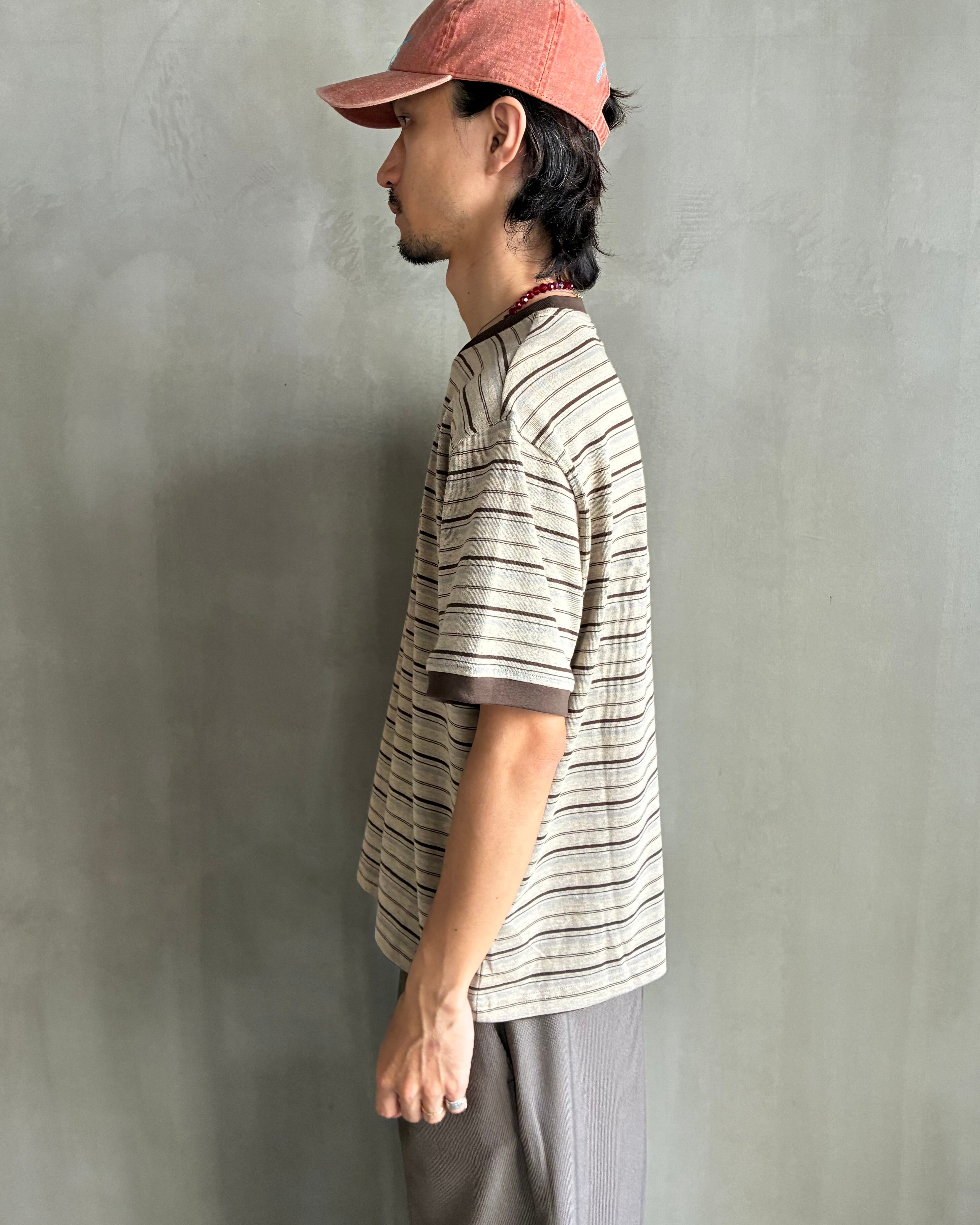 PLATEAU STUDIO【Stripe logo tee -Brown stripe-】